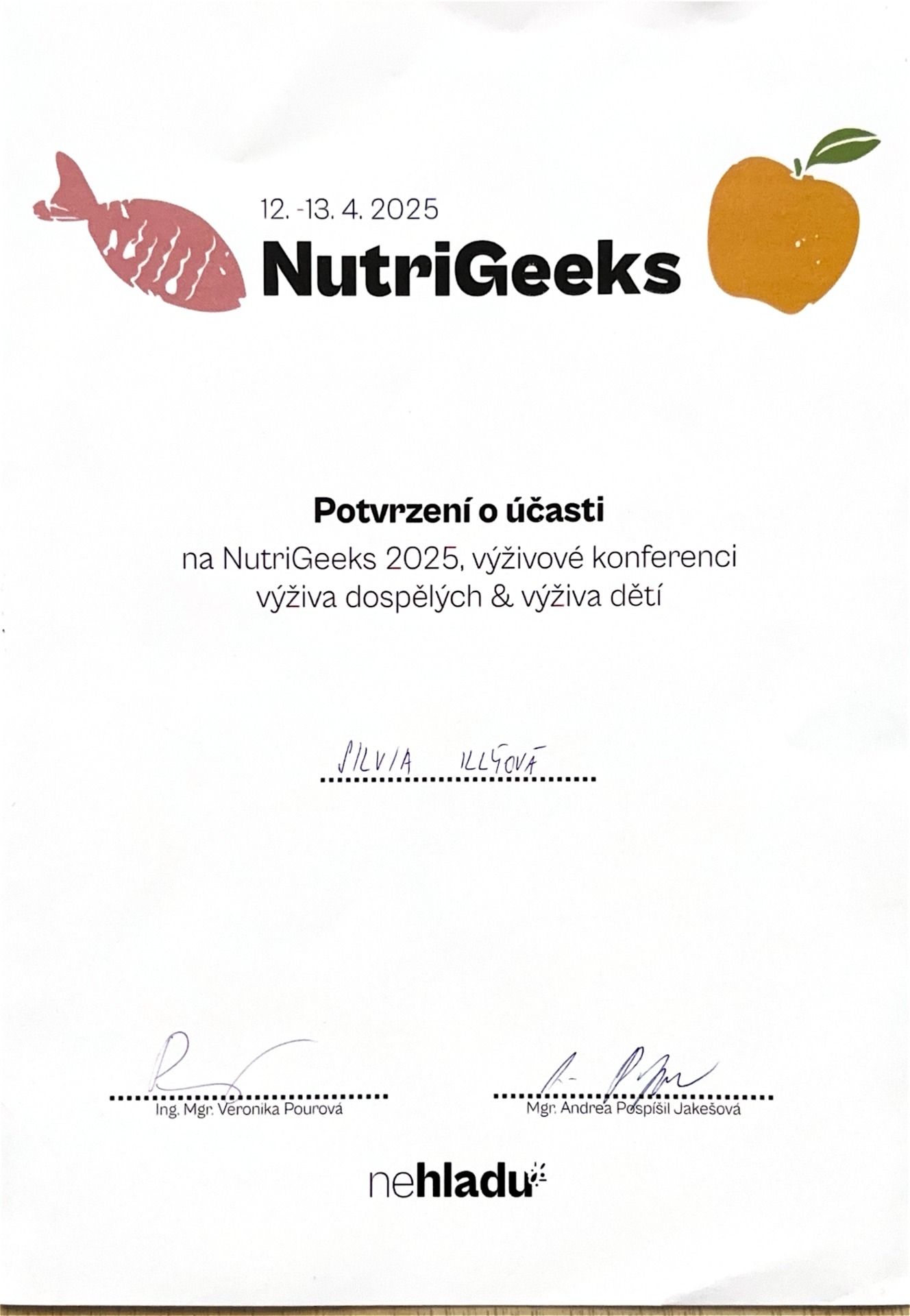 Vzhledem k tomu, že výživa je stále se rozvíjející obor, pravidelně se účastním konferencí a workshopů, abych klientům poskytovala aktuální a vědecky podložené informace.